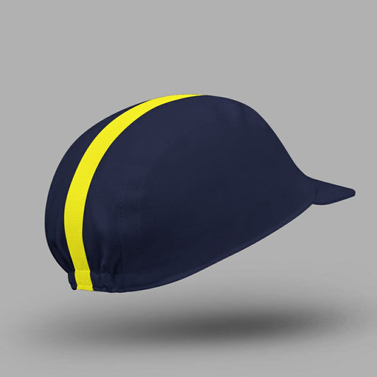 BELLO CYCLIST Classic Cotton Cycling Cap - Navy Blue/Yellow Stripe