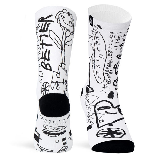 Designed by artist Alicia Vogel, these socks are inspired by her values and her way of seeing life. Uniquely designed with childlike illustration and optimistic messages, you will love these cycling socks not only because they look great, they are also super comfortable